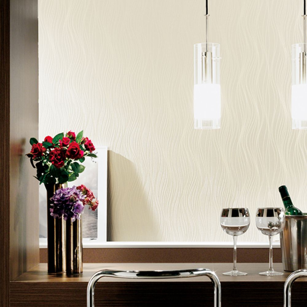 Mẫu giấy dán tường này mang hoa văn nhịp điệu nhẹ nhàng và tông màu trung tính, giúp không gian trở nên thanh lịch và cân đối.